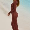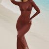Sunset styling. Sunset styling. Designed for transitioning from beach to bar, the Nauru maxi dress is crafted from premium semi-sheer mesh with a stunning ombré design, inspired by summer skies. It’s cut to a figure-enhancing bodycon silhouette with a high neck, long sleeves and a statement open back.