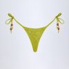 Side-Tie Bead Thong Bikini Bottoms in Olive Leopard Hotfix