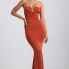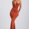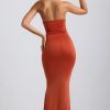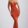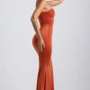 One to save for your next occasion. Perfect for slipping into ahead of sunset drinks or an extra-special dinner date, the Kehlani dress is a statement take on a classic silhouette. It’s made from our signature slinky jersey with a soft-touch feel and falls to a maxi-length fishtail skirt, creating the illusion of a perfect hourglass shape. The strapless bodice is enhanced with considered ruching and anchored with custom-developed hardware that secures the irregular plunging neckline.