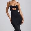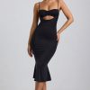 Classic silhouettes enhanced with high-impact elements. An ideal complement to dinner dates or sunset drinks, the Julane dress is rendered in three high-impact hues and cut from our signature stretch jersey with a slinky, soft-touch feel. The cut-out cowl neck makes way to a ruched sweetheart bralette that’s adorned with custom-developed hardware, evoking a signature statement touch.