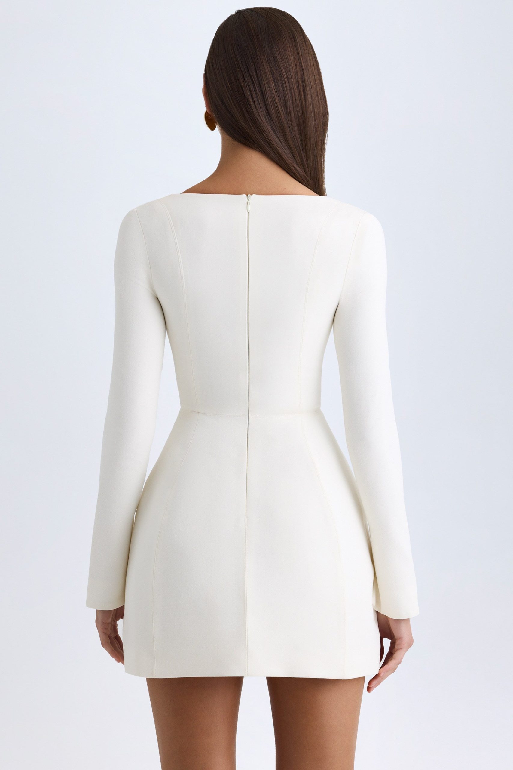 Square-Neck Structured Tulip Mini Dress in Vanilla