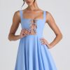 Designed with spontaneous daytime plans in mind: think al fresco lunch dates or brunch with the girls. Crafted from lightweight georgette that perfectly enhances your curves, the Nanisca micro mini dress is cut to a sweet A-line silhouette with cut-out detailing and adjustable ties at the bodice. It’s completed with a gathered tulle underlay at the hem.
