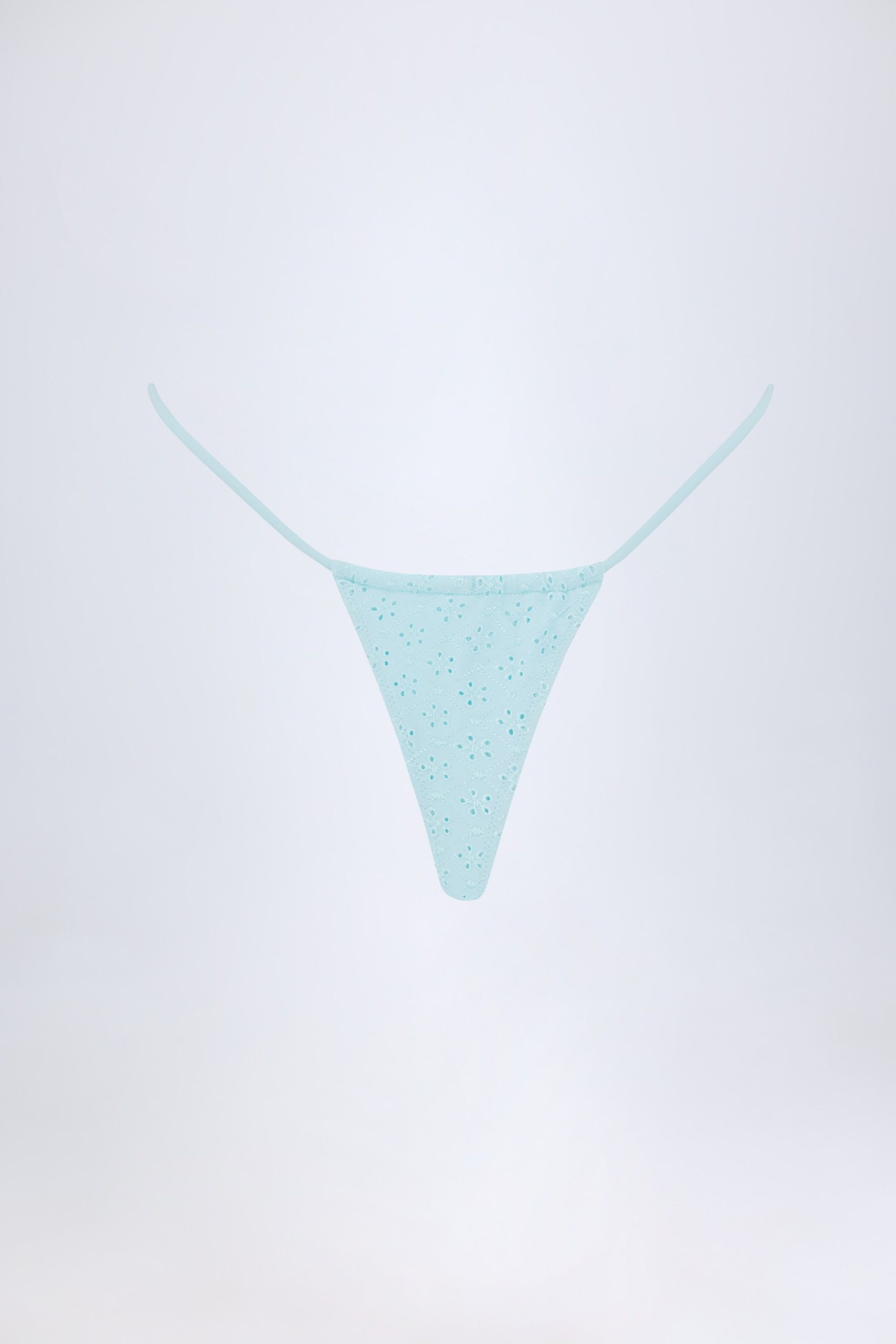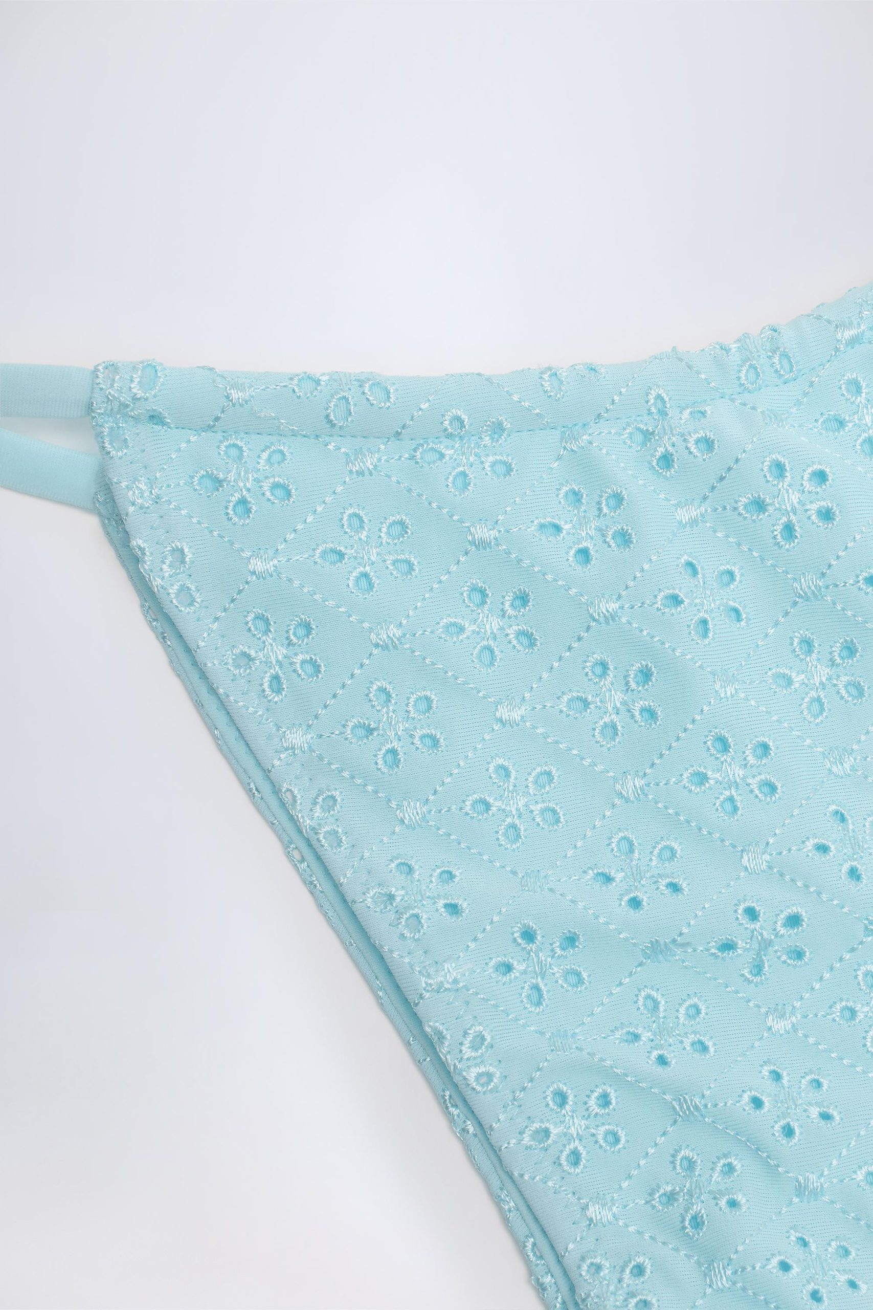 Broderie Anglaise Drawstring Bikini Bottoms in Powder Blue