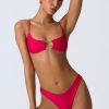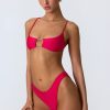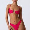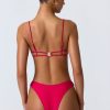 One for your next girls’ trip. A statement design that’s sure to turn heads when paired with the coordinating bottoms, this bikini top is elevated with a cut-out at the bust anchored with gold-tone chain hardware and cut-out detailing at the back. It’s crafted from premium stretch-jersey swim fabric and framed with slender adjustable shoulder straps for a supportive fit.