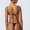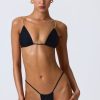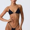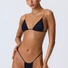 A classic design with an elevated twist, this bikini top is crafted from premium stretch-jersey swim fabric to a timeless triangle silhouette, anchored with gold-tone chain-link hardware. Designed with moveable ruching at the cups for customisable coverage, it’s finished with adjustable shoulder straps and ties at the back for your perfect fit.