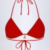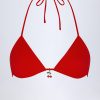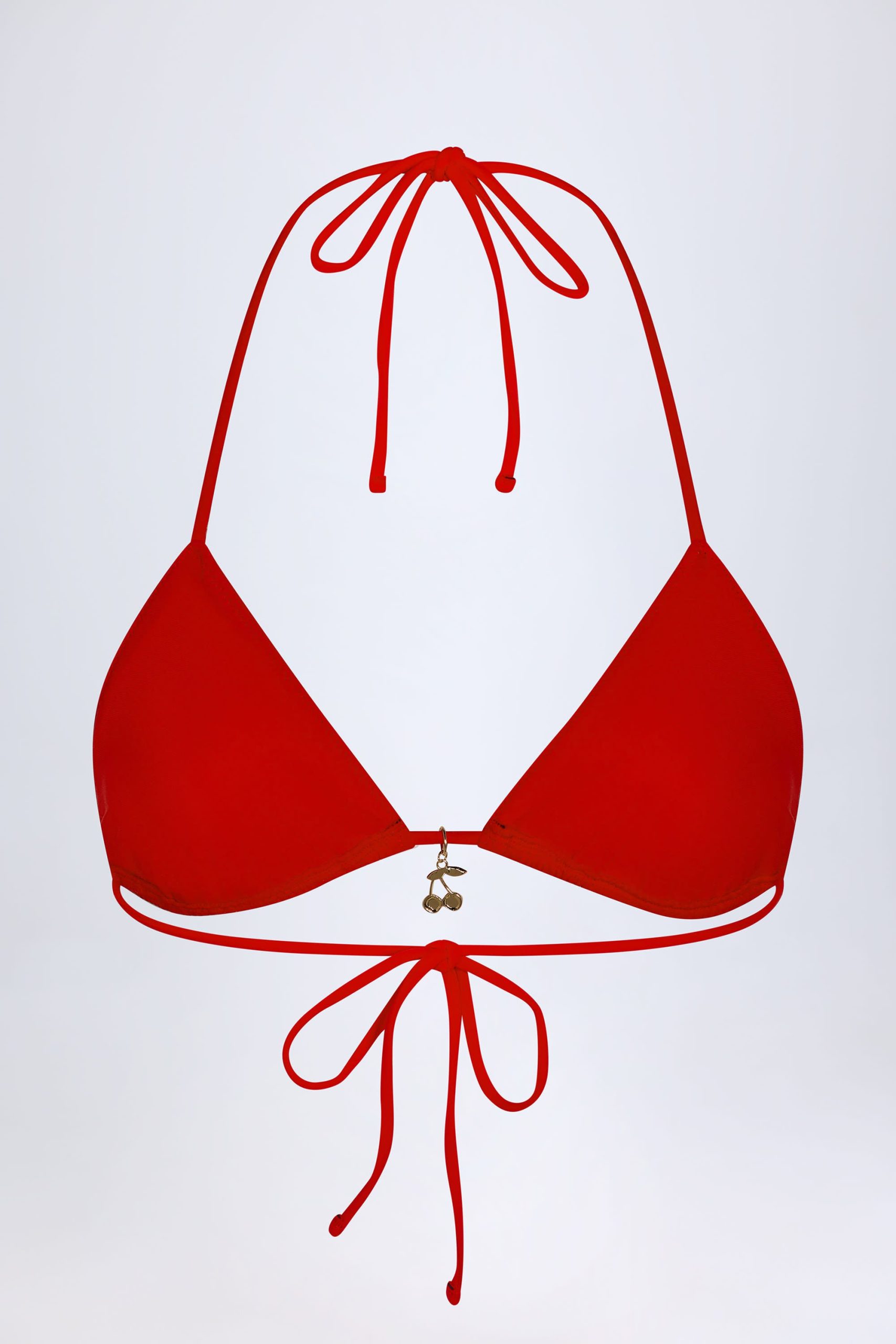 Swim staples with a playful twist. Crafted from our premium stretch swim jersey, the Recife bikini top is cut to a classic triangle silhouette with a ruched underbust for custom coverage. It features halterneck and back straps that can be adjusted for your perfect fit and is strung with a glossy cherry charm, in keeping with the statement aesthetic.