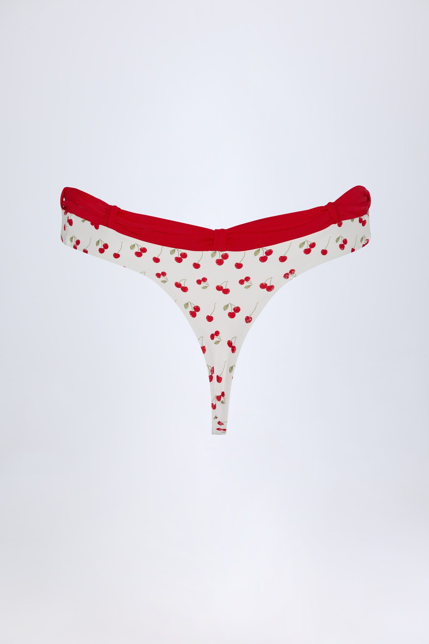 Fresh prints, instant impact poolside. Designed to make a statement, the Aegina bikini bottoms are cut to a high-leg silhouette with a low-rise V-front design and detachable contrasting belt. They’re crafted from our premium stretch swim jersey, feature a glossy cherry hardware charm and are designed with minimal thong-back coverage.