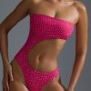 Embellished Cut-Out Cheeky One-Piece Swimsuit in Raspberry Sorbet