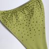 Embellished Drawstring Thong Bikini Bottoms in Olive Green