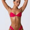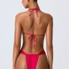 Perfect silhouettes for soaking up the sun. An elevated take on classic triangle styles, this halterneck bikini is uplifted with hammered gold-tone rings at each strap. It’s crafted from premium stretch-jersey swim fabric and features functional side ruching. It ties at the back and nape for a secure, custom fit.