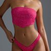 Embellished Scarf Bandeau Bikini Top in Raspberry Sorbet