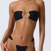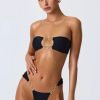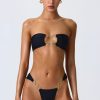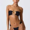 Classic design, statement details. An elevated take on timeless styles, these bikini bottoms are uplifted with a trio of hammered gold-tone rings at each fixed side strap. Available in three mix-and-match hues, they’re crafted from premium stretch-jersey swim fabric with cheeky back coverage and ruched side straps that provide a comfortable, non-restrictive fit.