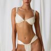 Pearl-Detail Ruched Bikini Top in Pearl White