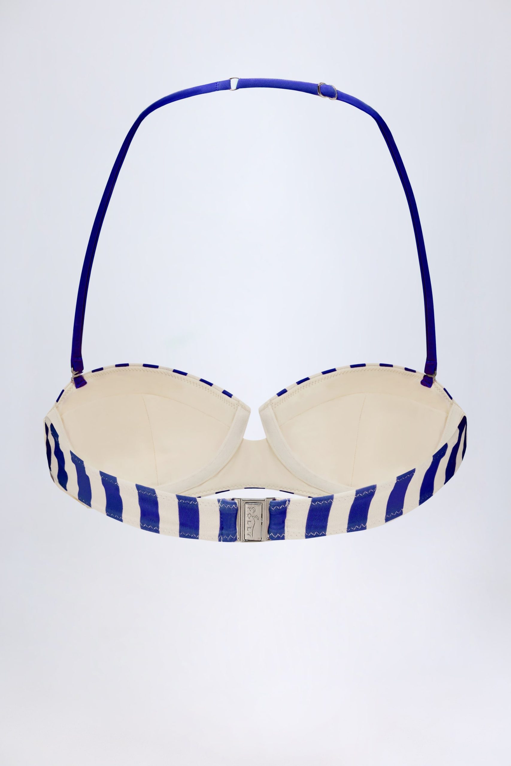 Underwired Halterneck Balconette Bikini Top in Marine Blue Stripe